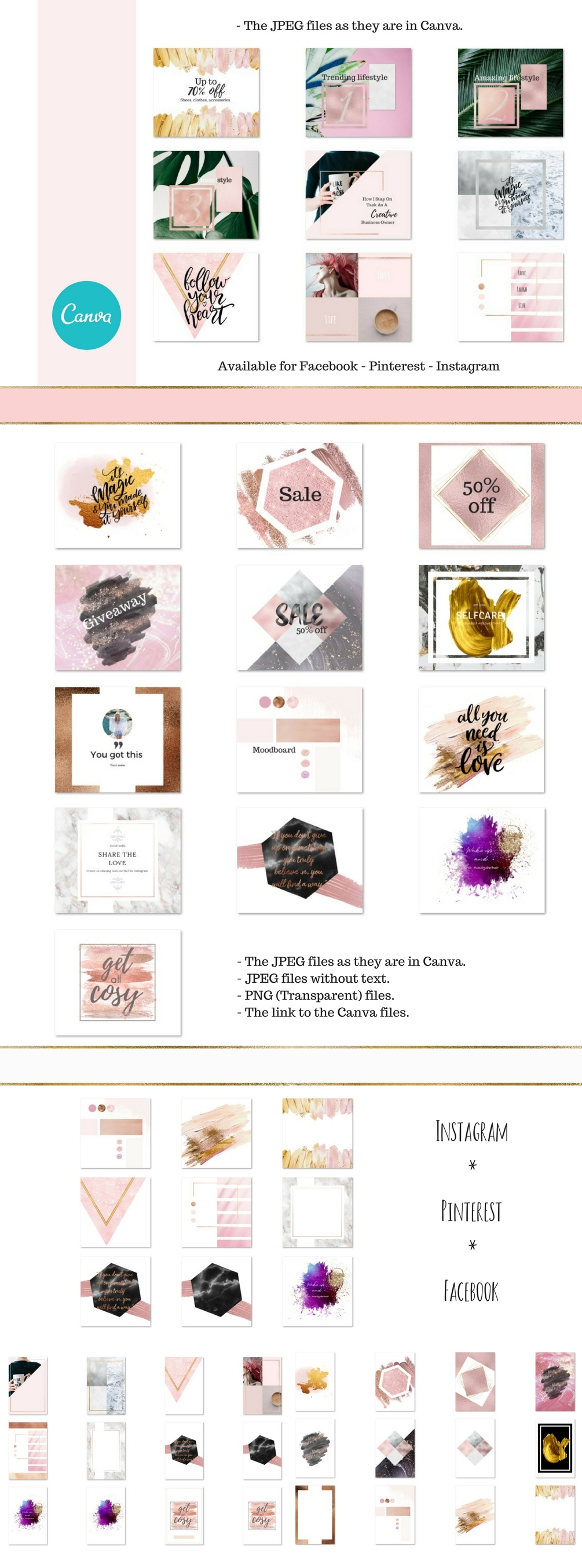 Download and extract the file after your purchase. You will receive three folders for each social media account, the link to Canva and a PDF file.